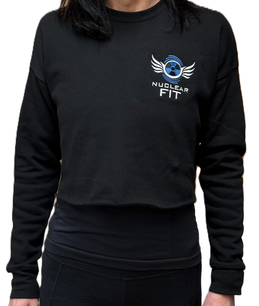 Keep warm whilst showing your love for Nuclear Fit in our gorgeous black cropped sweatshirt.